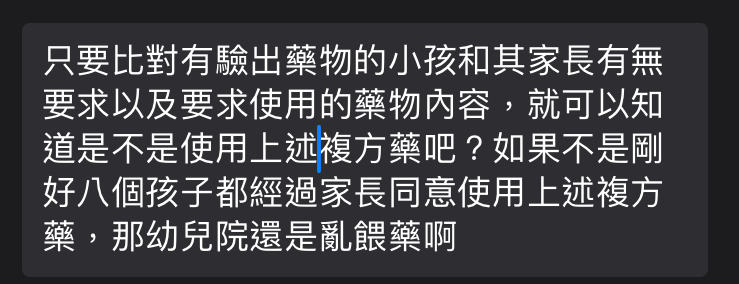 → afternight : 帶風向說有小孩家裡有人用藥影射家長給錯藥 但成人 06/12 23:06