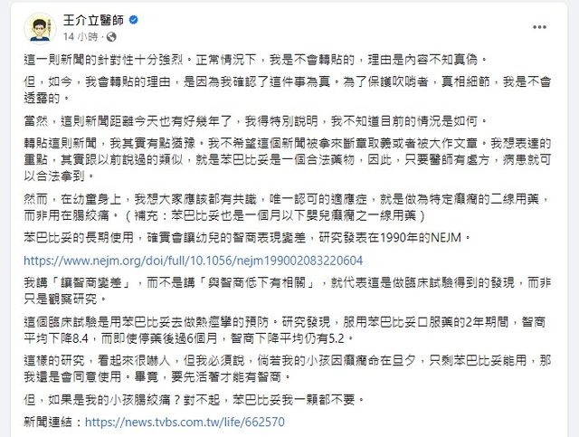 推 ray0527 : 前幾天看到另一位醫師fb貼文說這件事,底下被一堆政 06/15 11:43