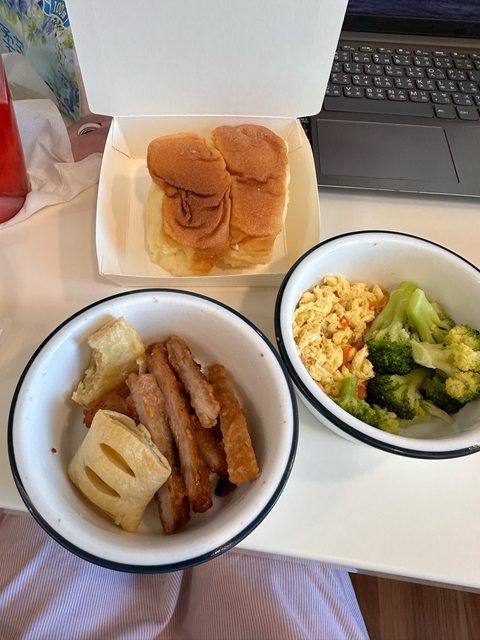 這是今天的早餐,還有一杯十榖飲跟一罐泌乳茶