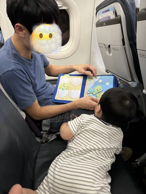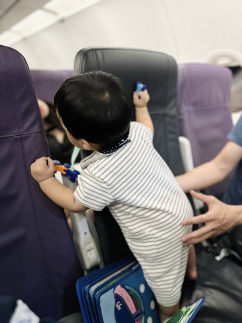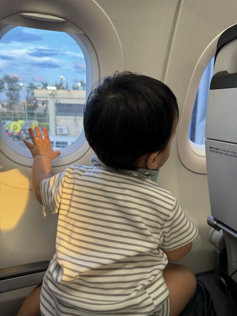起飛前就可以讓寶寶在靠窗的位子趴著看窗戶(真的起飛時還是要抱在手上)。