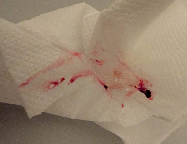 今天10/6凌晨鼻涕中帶血如照片,