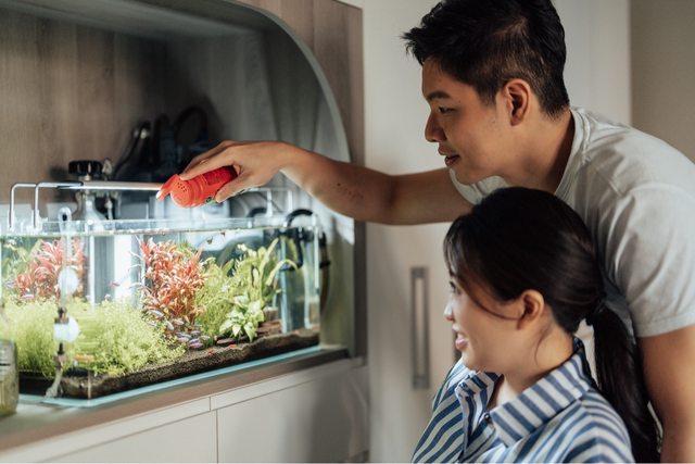 2.魚缸:友人幫我直接從外掛過濾器直接升級大圓筒+二氧化碳 變水草缸讓我懷孕時能看