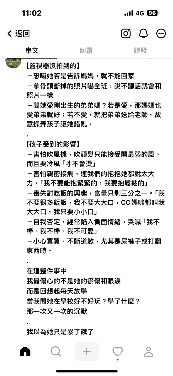 → Qailsa : ?如果是我孩子會跟她拼命,虐童心理變態下地獄都不 11/07 22:06