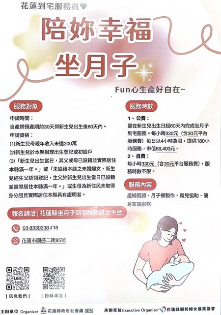 花蓮 免費180小時月嫂到宅幫忙坐月子