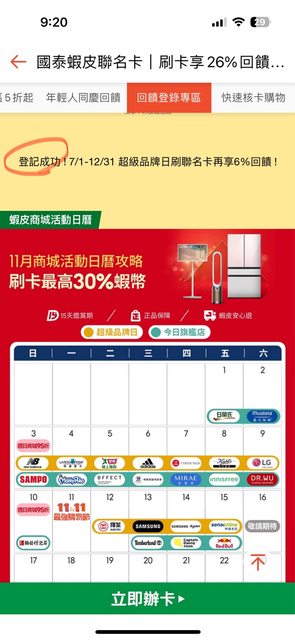 還能登記超級品牌日6%回饋(上限1000蝦幣