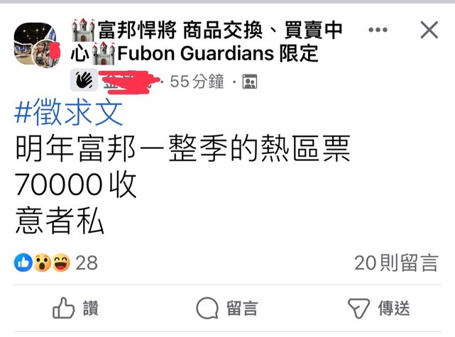 : 不過富邦季票那麼難買 七萬也不一定徵得到