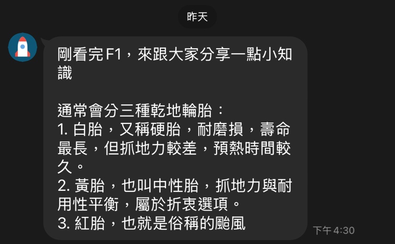 電影裡有教一些F1的簡單知識 畫面拍得真的帥