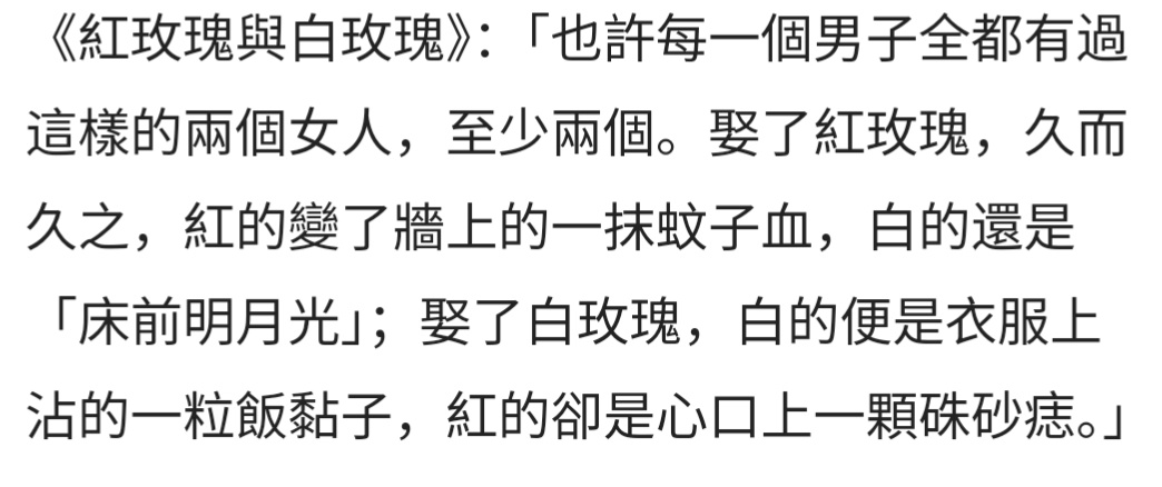 推 lcy317 : 張愛玲小說 紅玫瑰與白玫瑰 08/14 18:41
