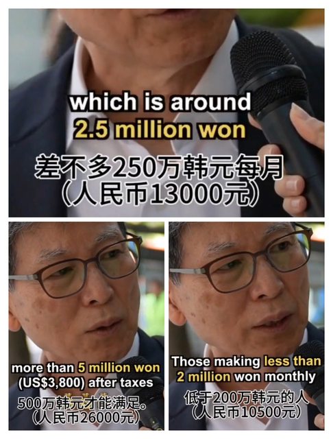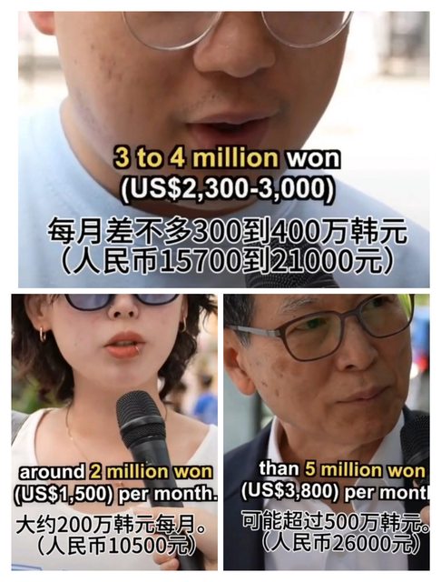 在韓國,若要過上普通甚至中產階級的生活,每個月的稅後收入需要達到500萬韓元。若每月收入低於200萬韓元,生活將會非常困難。