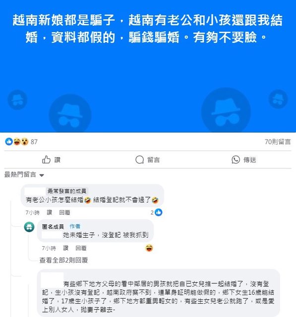 在Dcard上,一位台越二代女孩分享了她的親身經歷與心情: