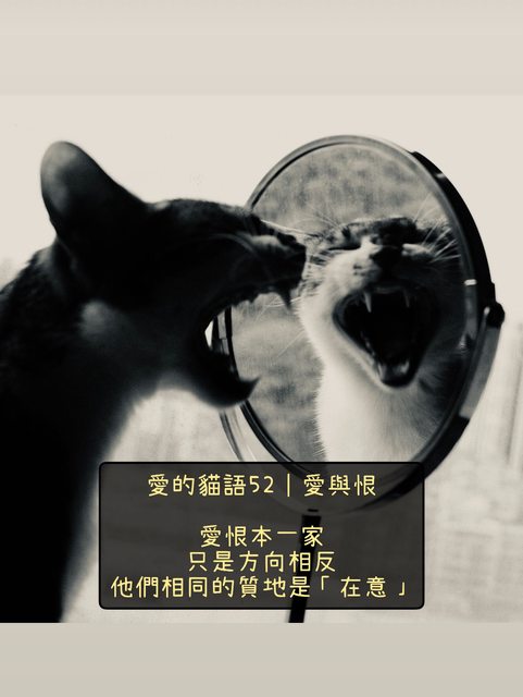愛與恨並不是直線的兩端,遙遙相望,而比較像圓形同一點的兩端。方向相反。比如說,當發現我很愛的對方,卻在我無意中發現對方手挽著另一人,背叛了我,狀似甜蜜地逛大街,瞬間這個愛反轉了,我開始問自己,對方是怎麼了?心中不由得懷恨起來,恨對方騙了我,而我越是愛對方,就越感覺到恨,加上憤怒。所以,愛與恨相同的質地是「在意」,只是它們方向相反。