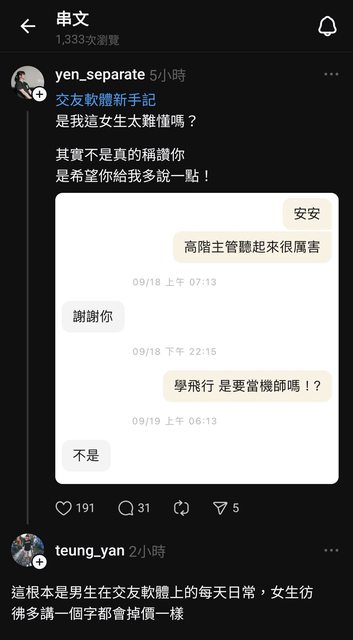 → hass231470 : 其實就是連女生聊天都要男生「帶」 11/05 16:41