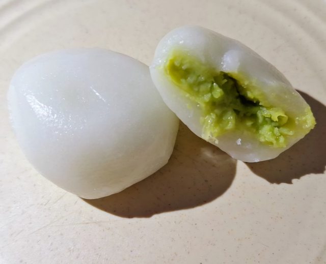 仙台的毛豆糰子 分成四顆 毛豆餡是包在裡面不是裹在外面