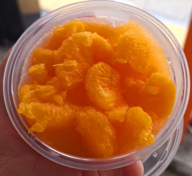 鋪滿滿滿冷凍橘子的剉冰 好吃不過比想像中酸