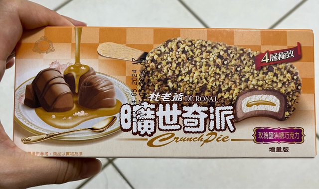兩個我之前都吃過了,玫瑰鹽的焦糖大約持續在雪糕上半部的三分之一,卡布奇諾冰棒吃