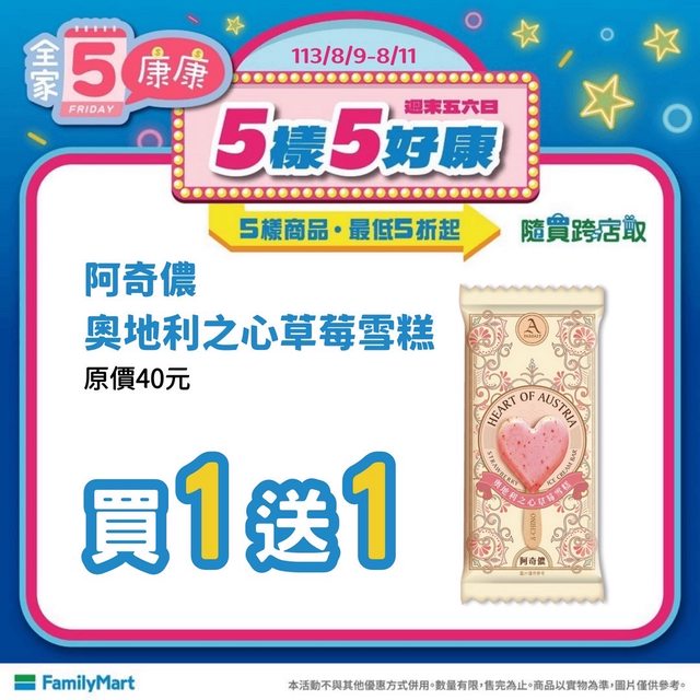 標題[情報] 全家 08/07~08/11 限時優惠+5康康