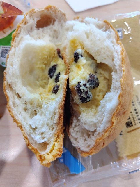 新款的奶酥餡份量感覺中規中矩 但葡萄乾還不少