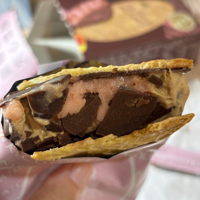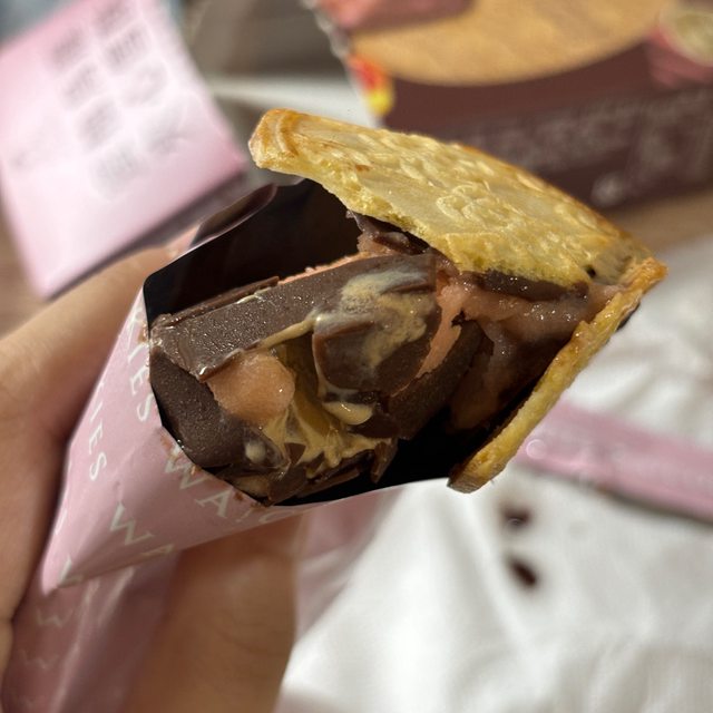 餅體跟巧克力脆皮黏合的那片 咬下去很酥脆