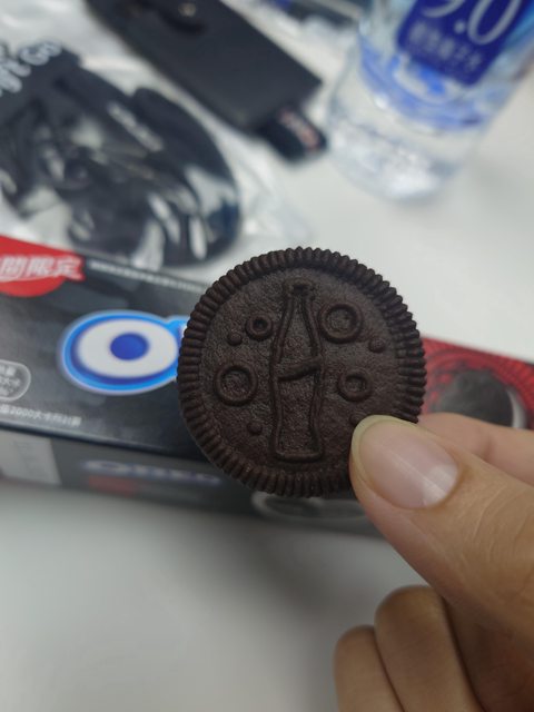 一打開包裝就有可樂的味道衝出來,咬下去餅乾有一種可樂糖的味道。內餡應該還是原本的奶油夾心,主要是在餅乾的部分有調整~