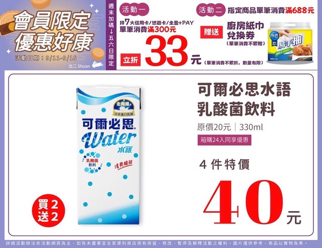 標題[情報] 全家 09/11~09/15 限時優惠+5康康