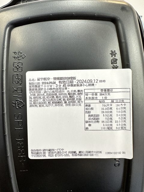 【商品名稱/價格】:星宇航空-雙醬雞排咖哩飯 99