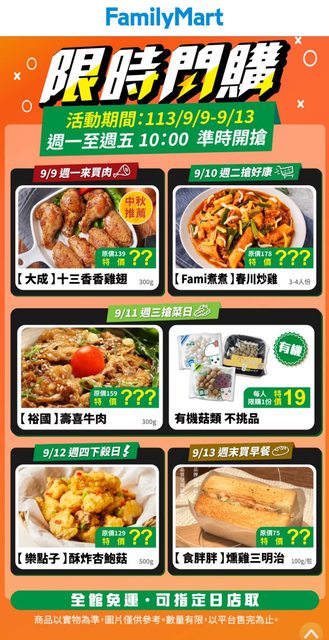 標題[情報] 全家食食購 9/11 10:00限時閃購