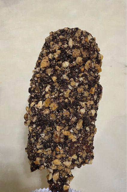 雪糕外面包覆一層巧克力脆皮,上面裹滿巧克力跟花生脆脆,整體滿小一支的,而且很會