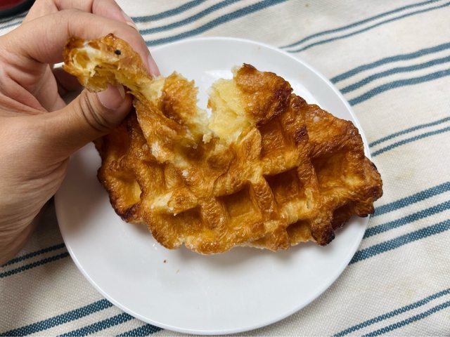可以吃到糖粒及可頌熱壓後脆脆的口感
