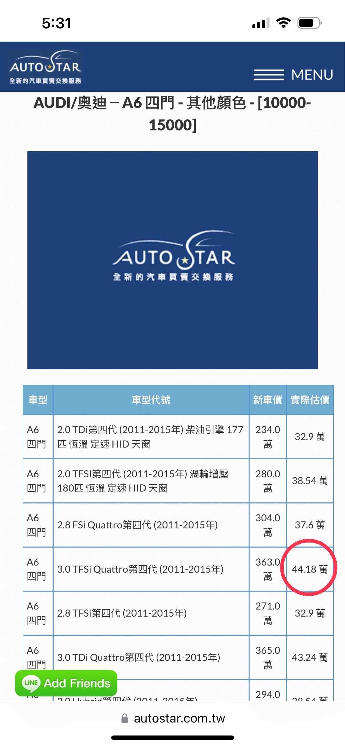 車款型式/排氣量: Audi A6 Sedan 3.0 TFSI Quattro