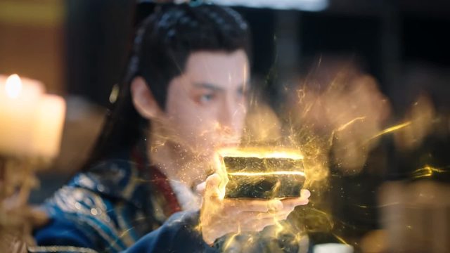 他有一幕是擋父王殺冥夜,所以父王法術就用金色