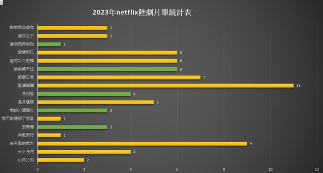 標題[情報] 2023下半年netflix Top 10 陸劇統計