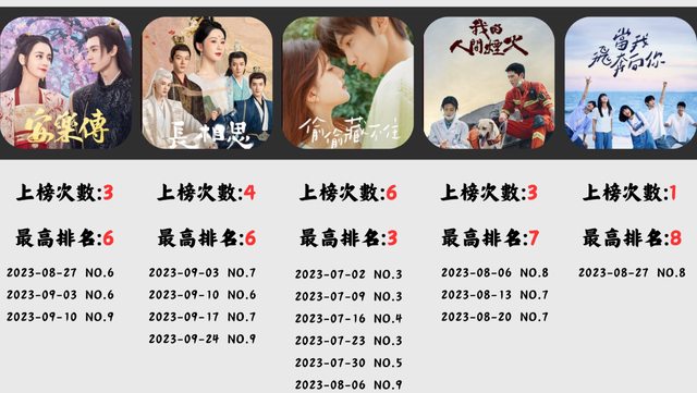 下半年直接縮減成5部上榜次數也只有17次,更可怕的是從9/24當周(長相思)結束後,就