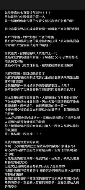 → TFY1018: 好推 長得好看演技很好 每個配角的對話我也都很喜歡 家 05/08 00:21