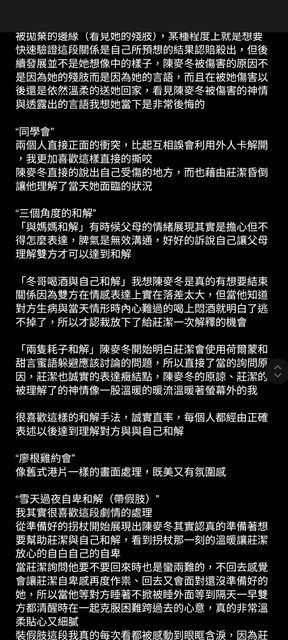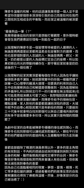 而是如何在我們之間找到互相成全的平衡點,而莊潔正被溫暖的被深愛著