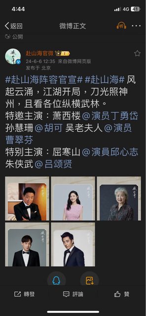推 cattielin: 搭的人真不錯 拍完赴山海接下來就等長安二十四計了 那 06/06 22:53