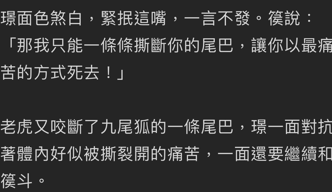 → pattyyen: 有九個腦袋嗎?還記得自己寫過什麼嗎?相柳安慰小夭那段 07/18 09:32