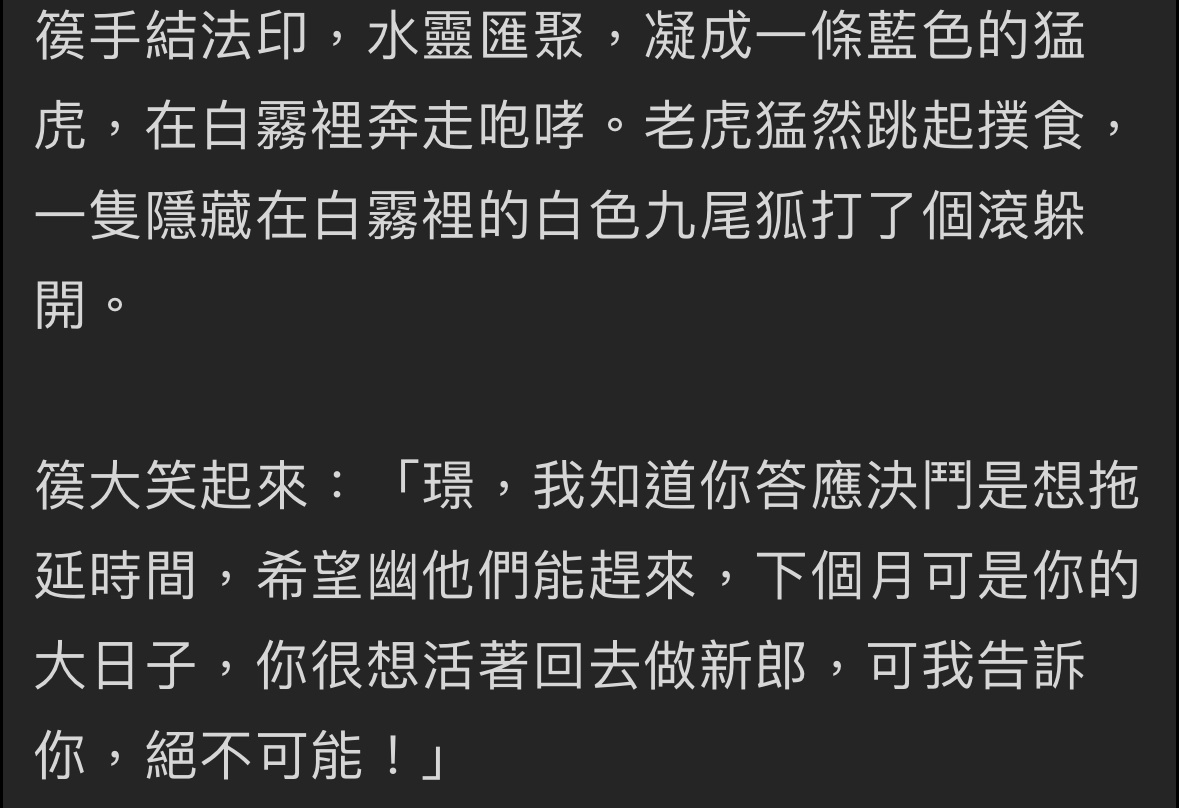 → Abbee: 篌是虎? 那為什麼璟驗瑱血時,說小孩是繼承九尾狐 07/23 22:36