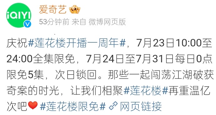 推 firstname: 推推 蓮花樓一週年了 在愛奇藝電視劇排行榜已經霸榜11 07/23 12:29