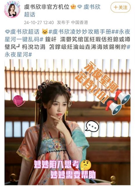 → Auxo: 永夜星河官方劇超話基本上現在只剩下女主粉絲經營了(遠目) 10/28 14:04