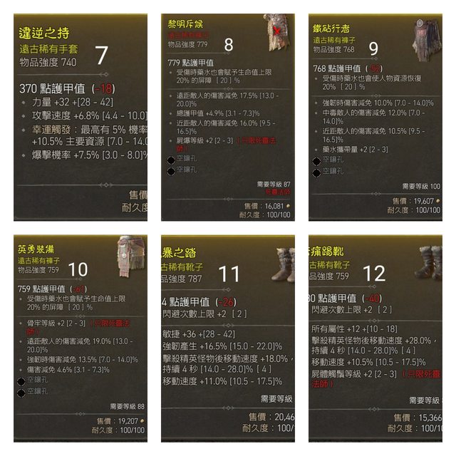 9.強韌減 中毒減 近距減 藥水量2(褲子) 等需100