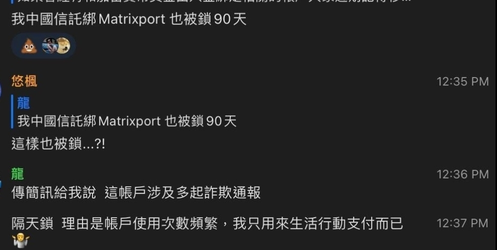→ usmaik: Matrixport群也有人被鎖 02/02 16:44