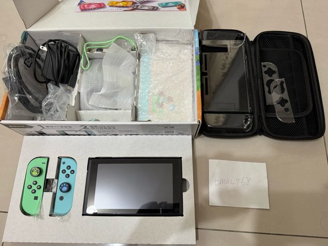 ★【物品名稱】:售switch 電力加強版主機(動物森友會特仕機),盒裝配件齊全,附