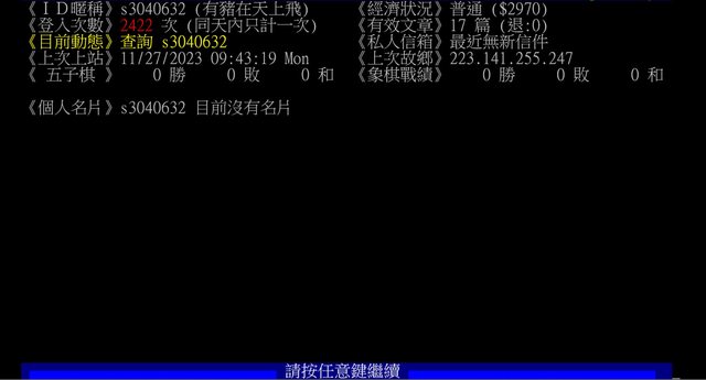 → s3040632: 售出223.141.255.247 11/27 14:57