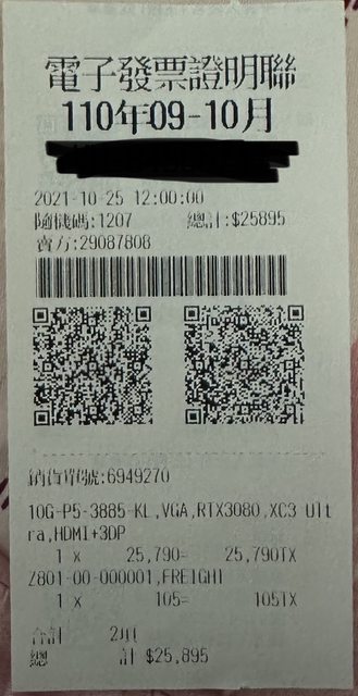 2.2021.10.25 購入,顯卡已註冊五年保,配件盒裝完整,附發票副本