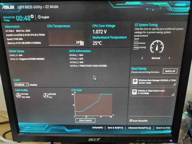 1. i3-6100+H110M-E+金士頓DDR4-2133-8G