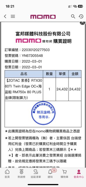 [1;33m◎硬體型號:Zotac 3060ti Twin edge oc[m (禁止販售未拆封之物品,贈品、獎品?