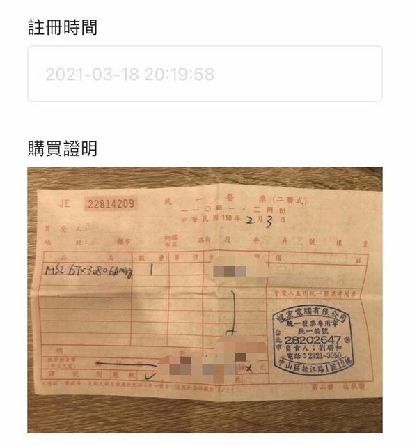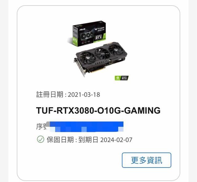 2.購自硬客高手,購買日期2021.2.28,保固至2024.2.7,