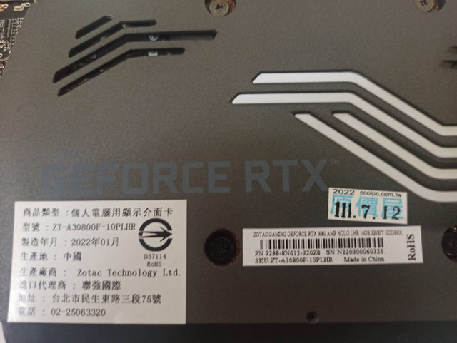 標題(已售出) 索泰 Zotac 3080 amp holo 10G