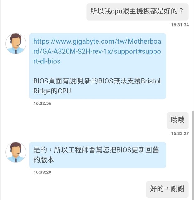沒注意更新BIOS不支援舊型CPU 送回原廠降回BIOS 今天剛拿回來確定已可開機 有支援M.
