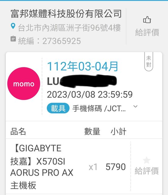 主板,2023.3.8momo購買,盒裝配件齊全,